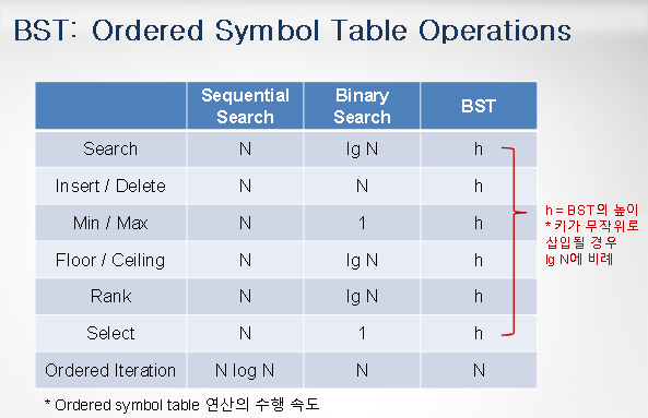 ↳ 삽입, 탐색(평균)도 루트 N으로 증가!- LLRB가 tree 밸런스가 좋으므로 BST에 비해 빠름