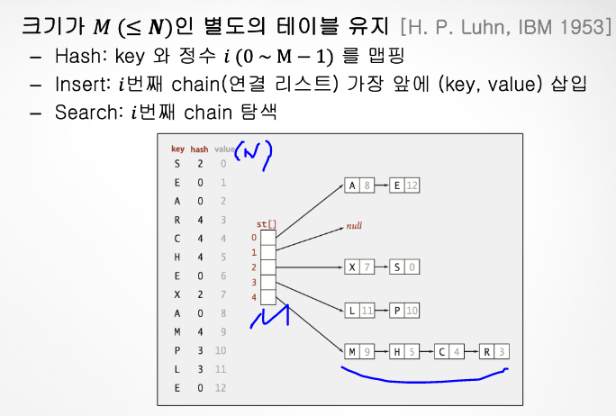 - 배열 크기 M은 key-value 개수 N보다 커야함