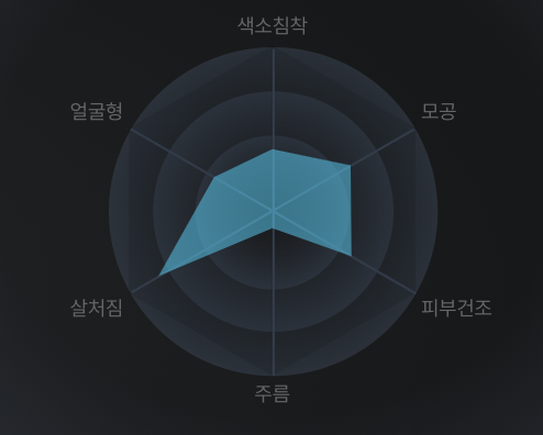 labels: ['색소침착', '모공', '피부건조', '주름', '살처짐', '얼굴형'],