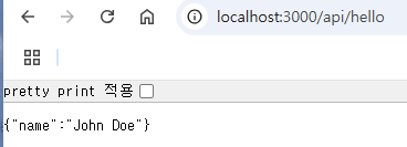 - 페이지를 확인해보면 현재 hello.ts에 작성된 json 파일이 나타나는 것을 볼 수 있습니다.