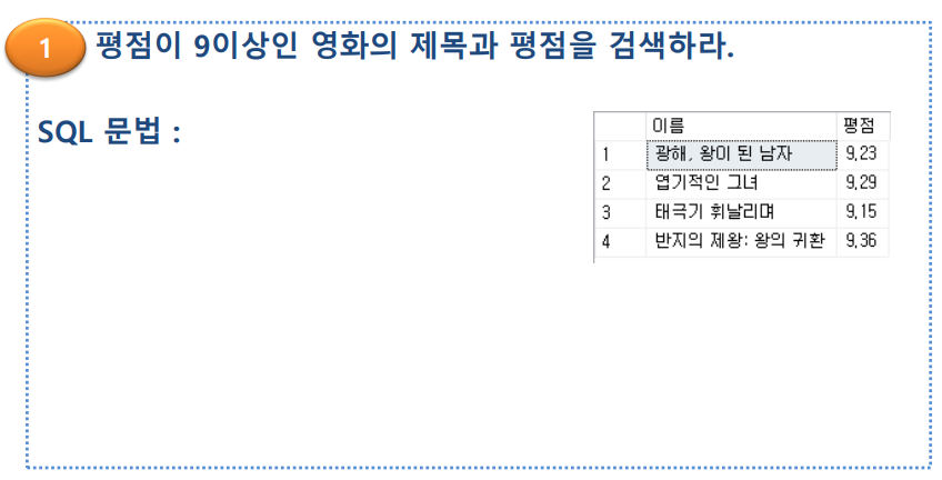 -1. 평점이 9이상인 영화의 제목과 평점을 검색하라