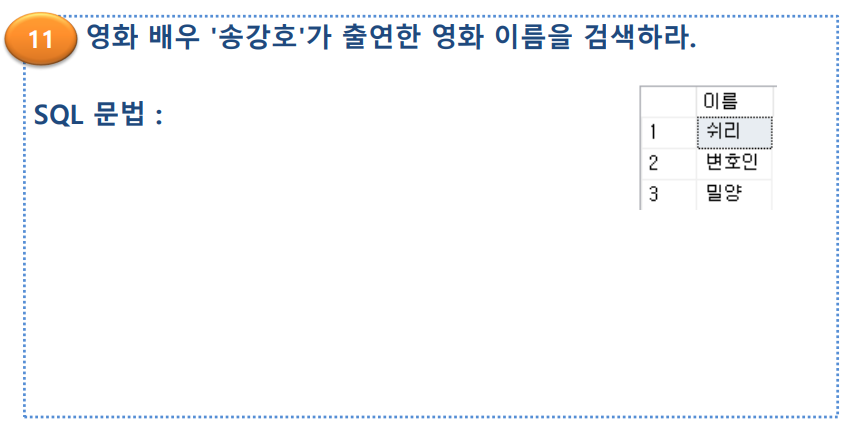 -11. 영화 배우 '송강호'가 출연한 영화 이름을 검색하라