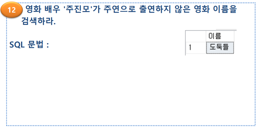 -- AND 배우.이름 != '송강호' 대신에 아래 코드를 작성해도 된다