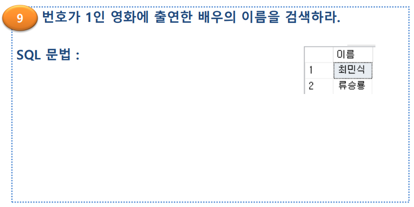 -8. 영화배우 '송강호'의 배우 번호를 검색하라