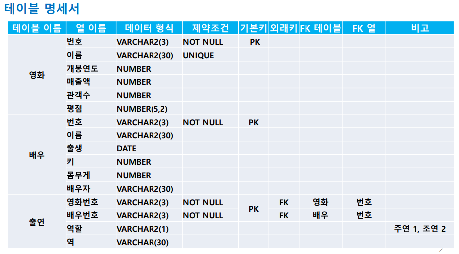 CONSTRAINT 출연PK PRIMARY KEY("영화번호", "배우번호"),