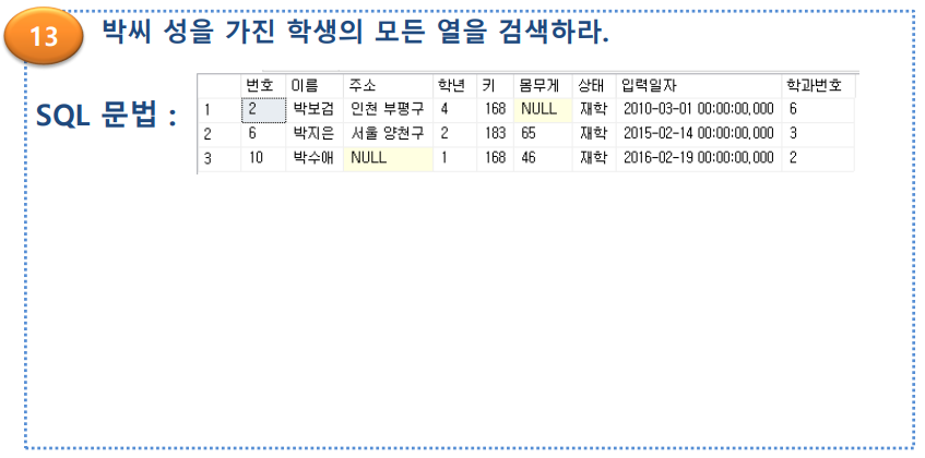 -13. 박씨 성을 가진 학생의 모든 열을 검색하라