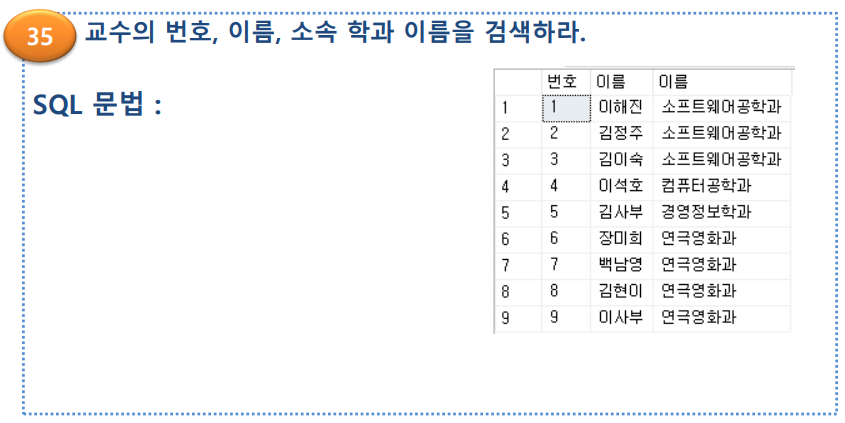 -35. 교수의 번호, 이름, 소속 학과 이름을 검색하라