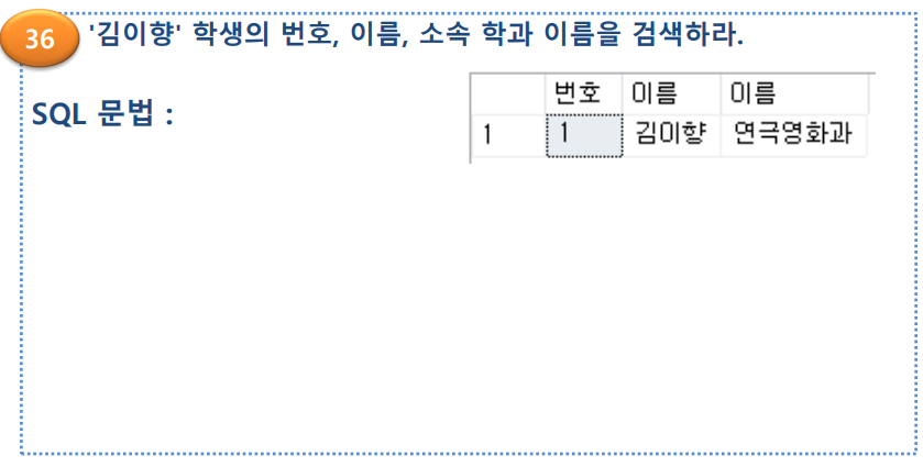 -34. 학생들의 학번, 이름, 소속학과 이름을 검색하라