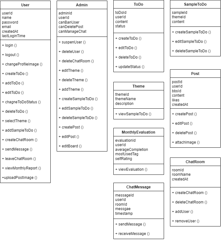 - 테마는 여러 사용자가 공유할 수 있으므로 독립적인 엔티티로 존재, 하지만 사용자의 선택에 따라 연결