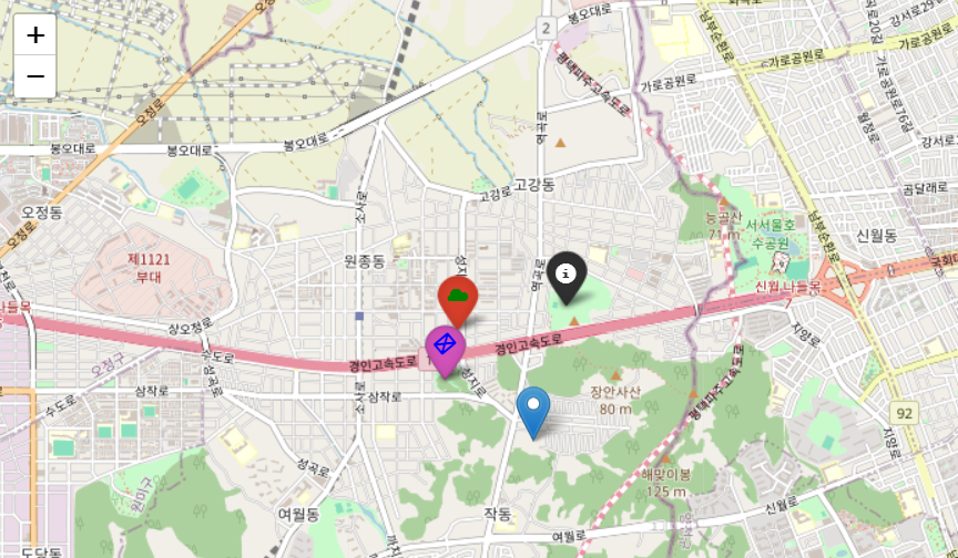 tiles='OpenStreetMap' <- 이 구문은 지도의 배경 타일을 지정하는 데 사용