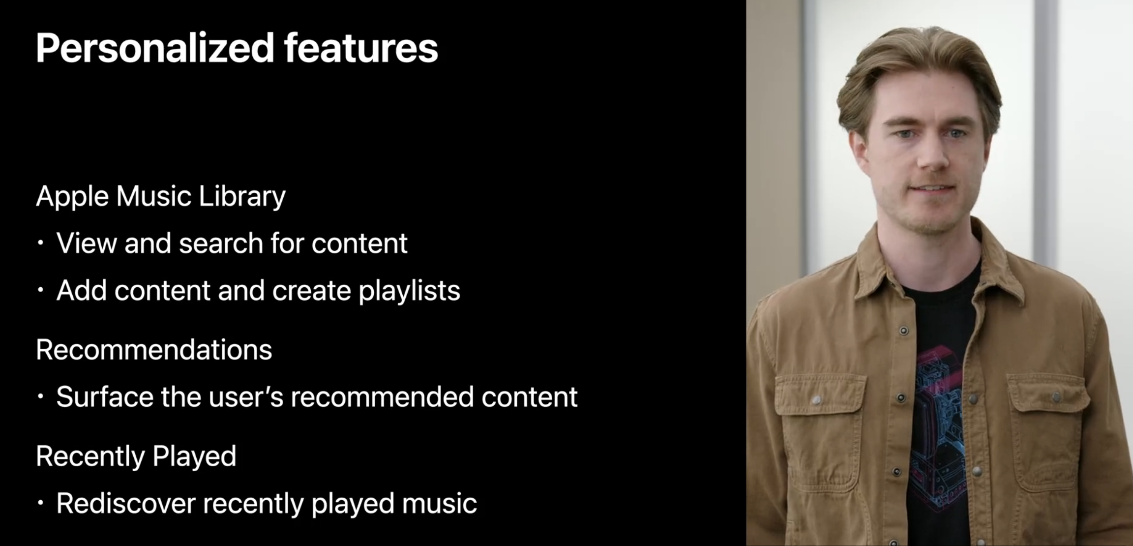 - Apple Music API 및 MusicKit은 특정 사용자에게 개인화된 기능에 대한 액세스를 제공합니다.