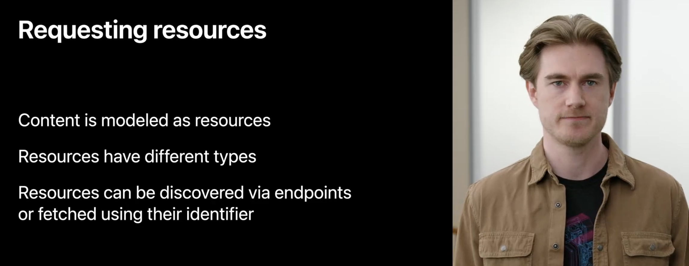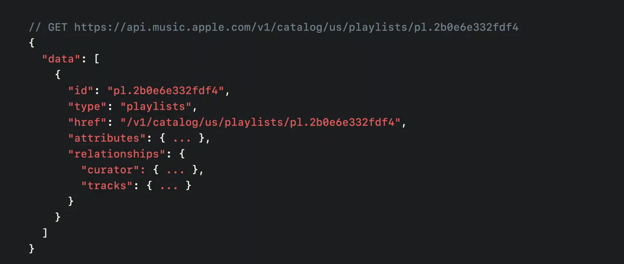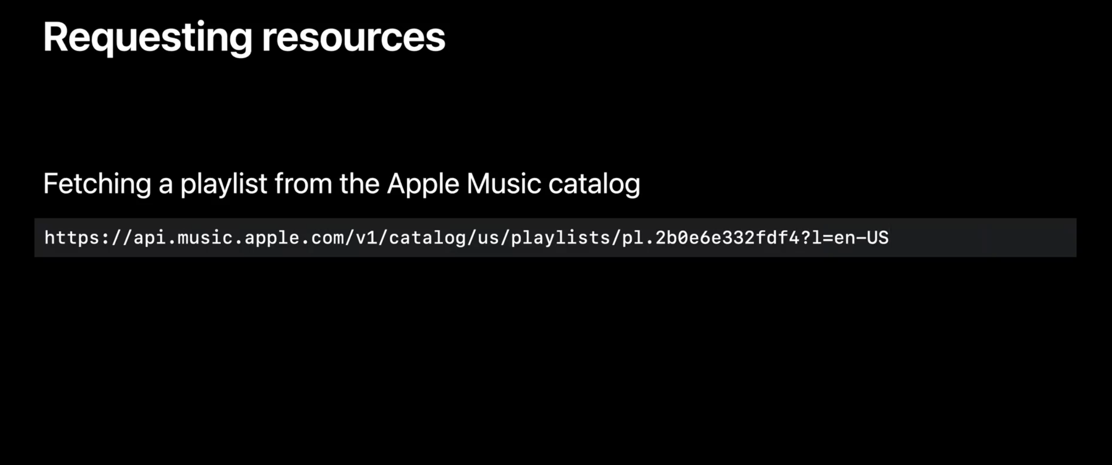 - 리소스는 검색과 같은 검색 기능이나 식별자를 사용하여 Apple Music API 엔드 포인트에서 가져올 수 있습니다.