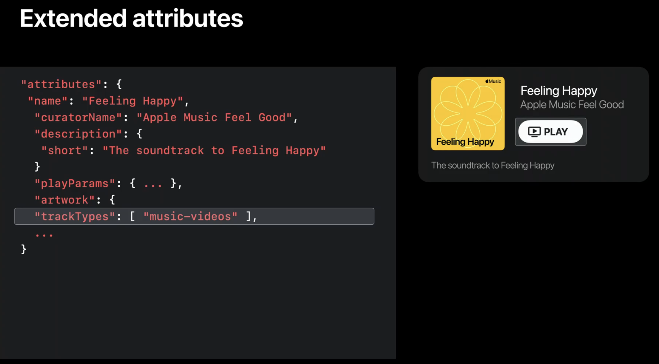 - 재생 목록에 대한 트랙이 자동으로 포함됩니다. 이는 관련 트랙 리소스에 대한 속성 메타데이터가 웅답에 표시된다는 것을 뜻합니다.