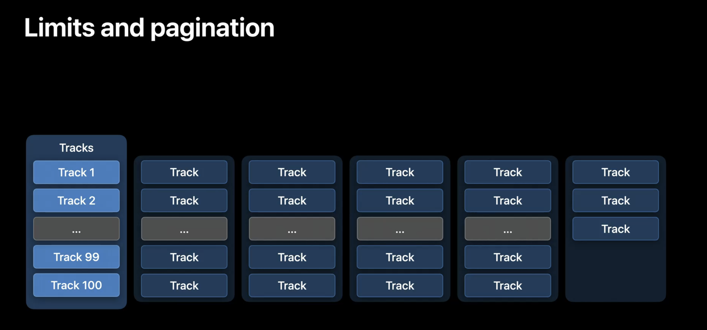 - 재생 목록에 100개 이상의 트랙이 있는 경우 후속 페이지에서 추가 트랙을 가져와야 합니다