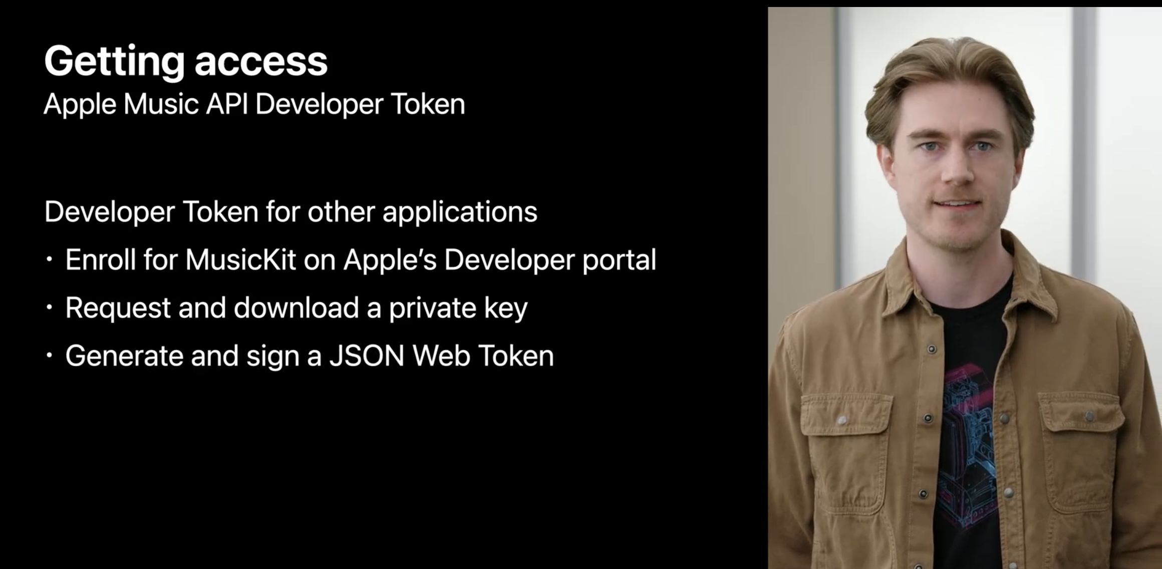 - 다른 플랫폼의 애플리케이션의 경우 Apple 개발자 포털에서 MusicKit 개발자로 등록하여 개발자 토큰을 얻을 수 있습니다.