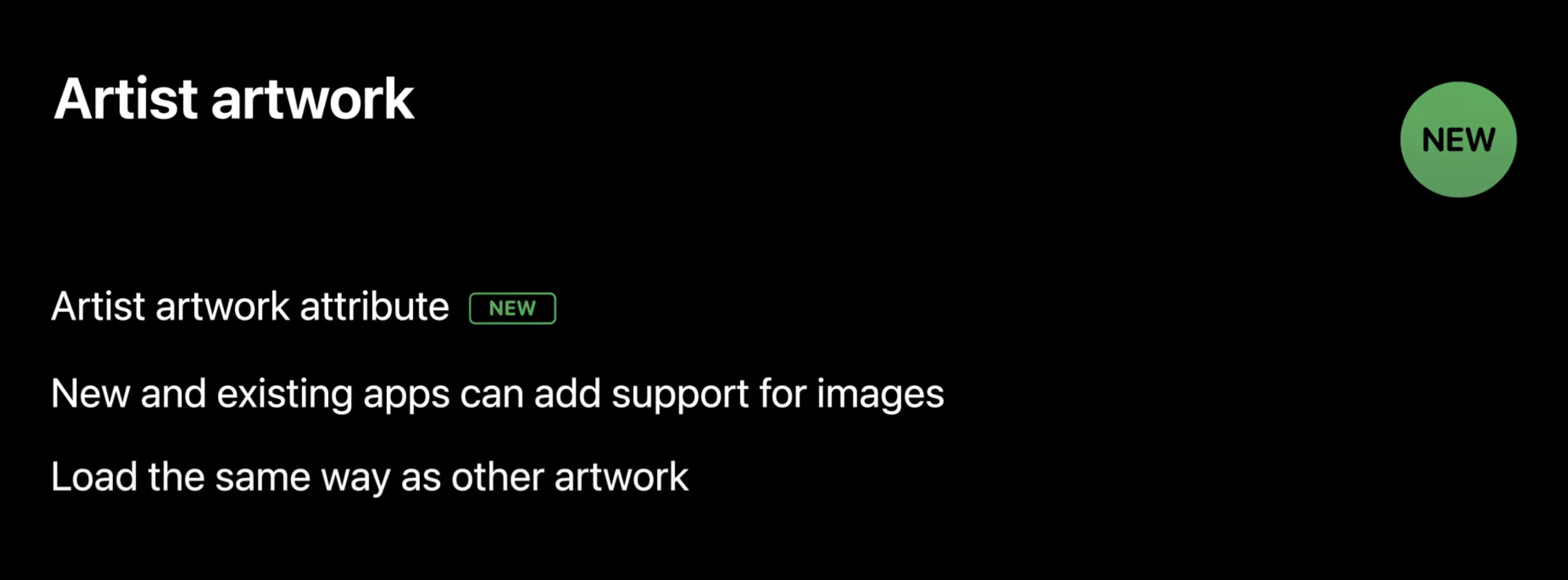 - 모든 신규 및 기존 앱은 아티스트 리소스에 추가된 아트워크 속성을 찾아 이미지에 대한 지원을 추가할 수 있습니다.
