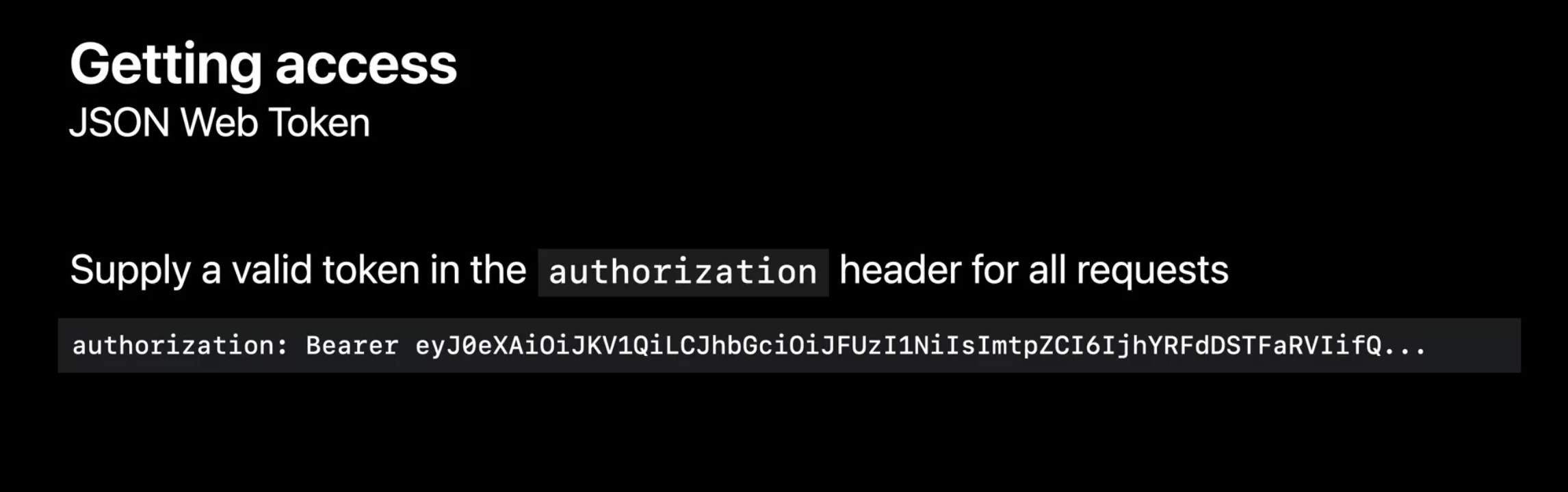 - Apple Music API에 대한 모든 요청은 인증 헤더에 유효하고 서명된 토큰을 제공해야 합니다.