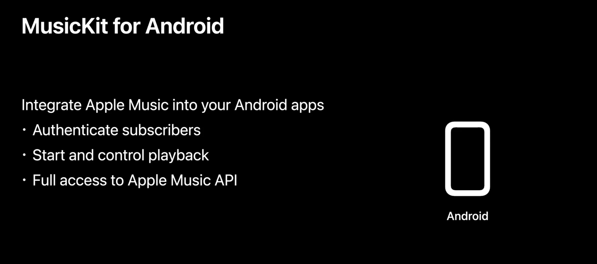 - Android용 MusicKit을 사용하면 Apple Music을 Android 애플리케이션에 통합할 수 잇습니다.