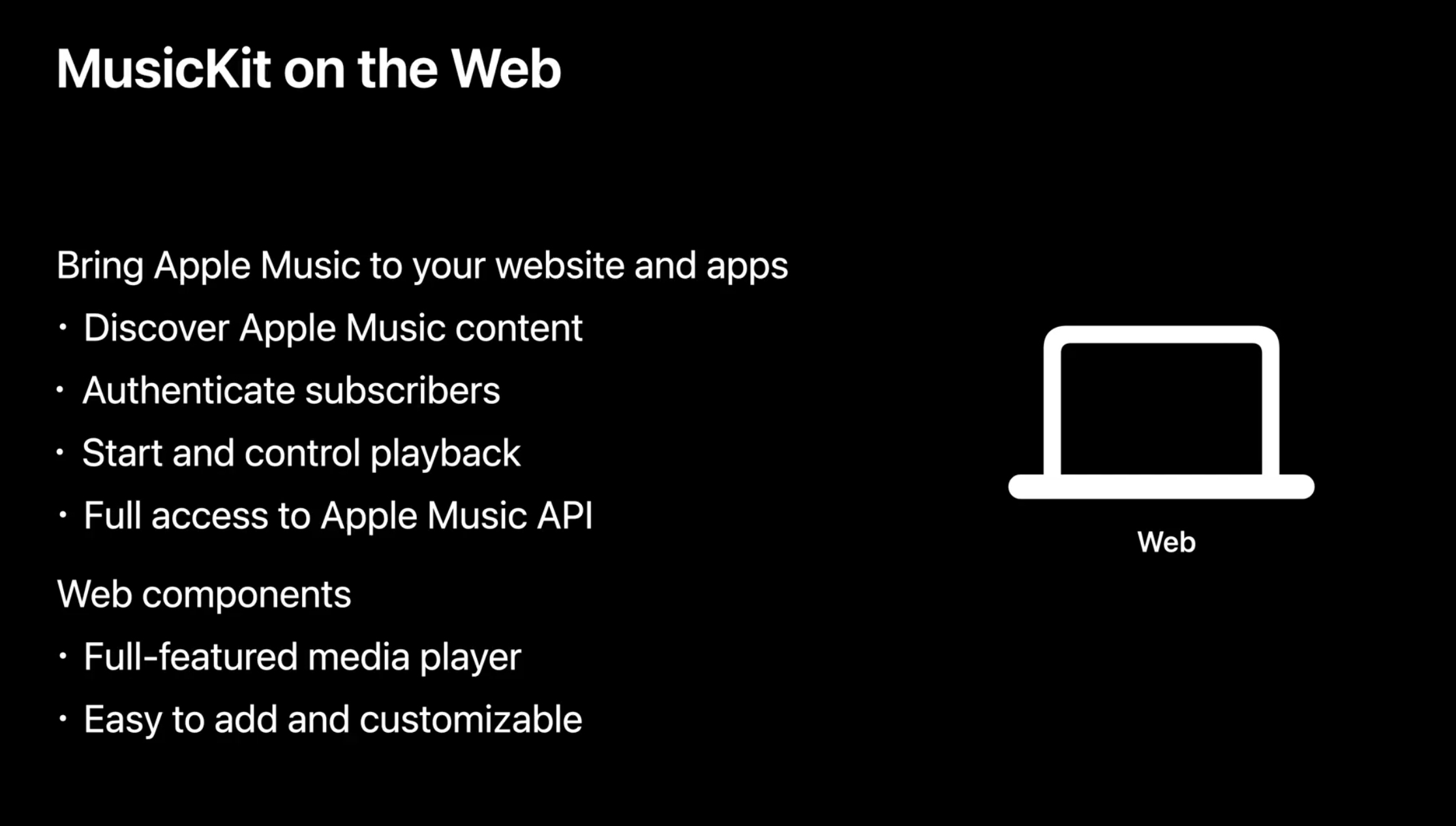- Apple Music 구독자 인증, 콘텐츠 재생과 제어, Apple Music API에 대한 전체 액세스 지원을 통해 풍부한 음악 경험을 구축할 수 있습니다.