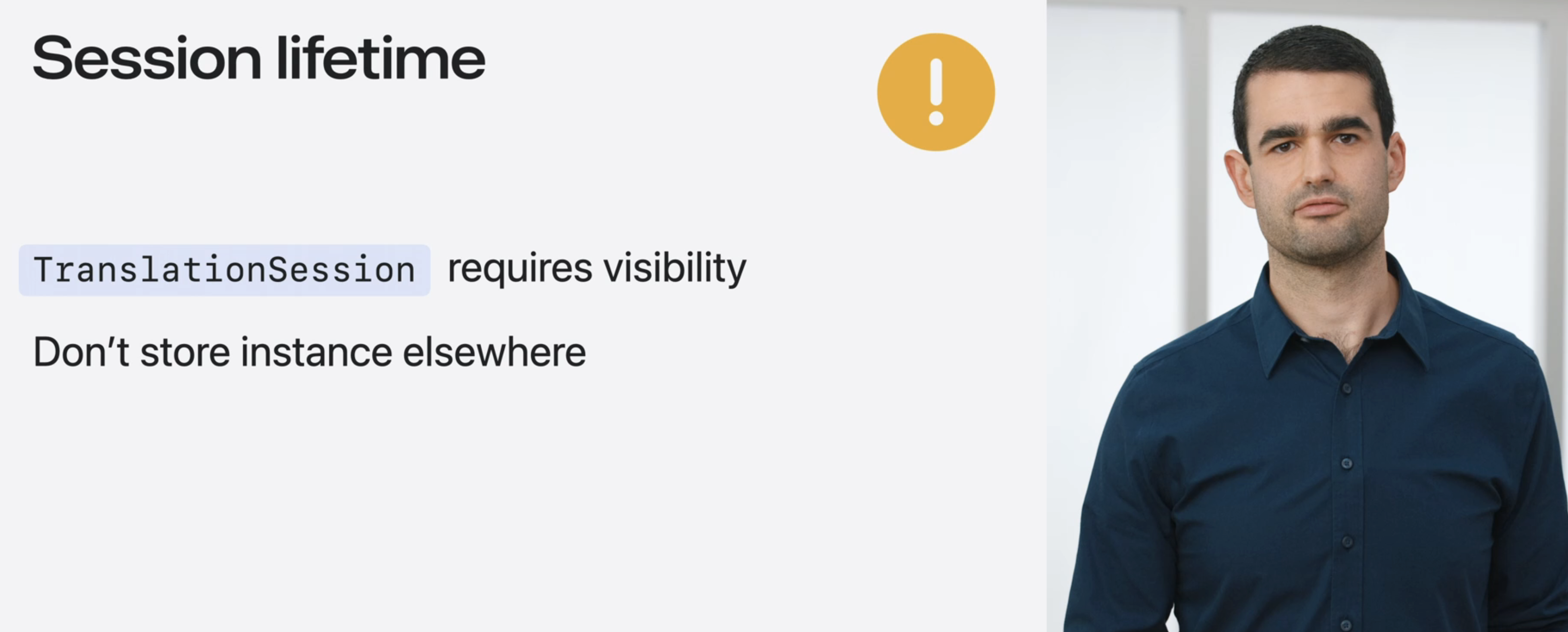 TranslationSession 인스턴스를 저장하는 방법에 주의하세요.