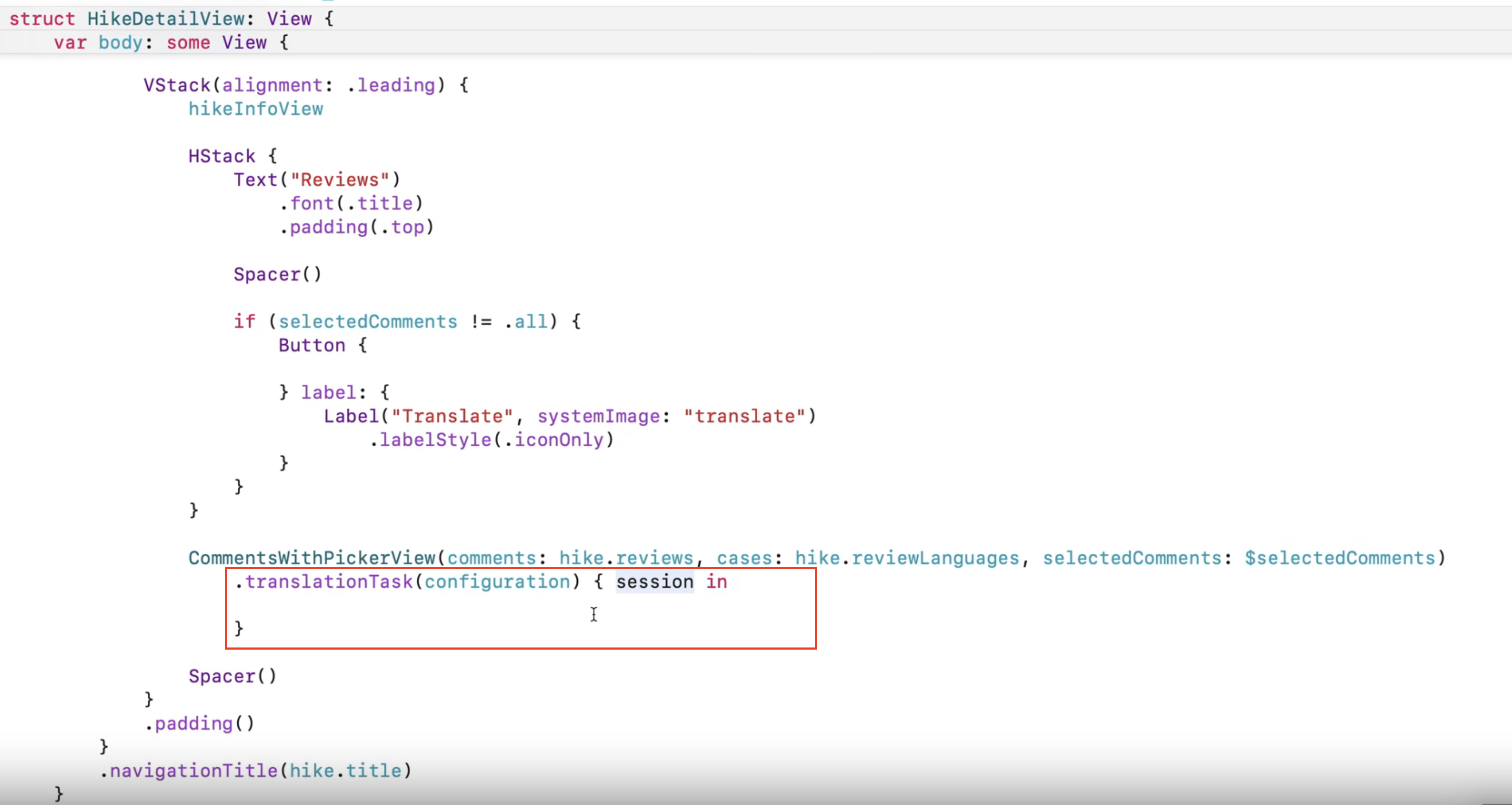 다음, 이 구성을 사용하는 .translationTask()를 추가합니다.