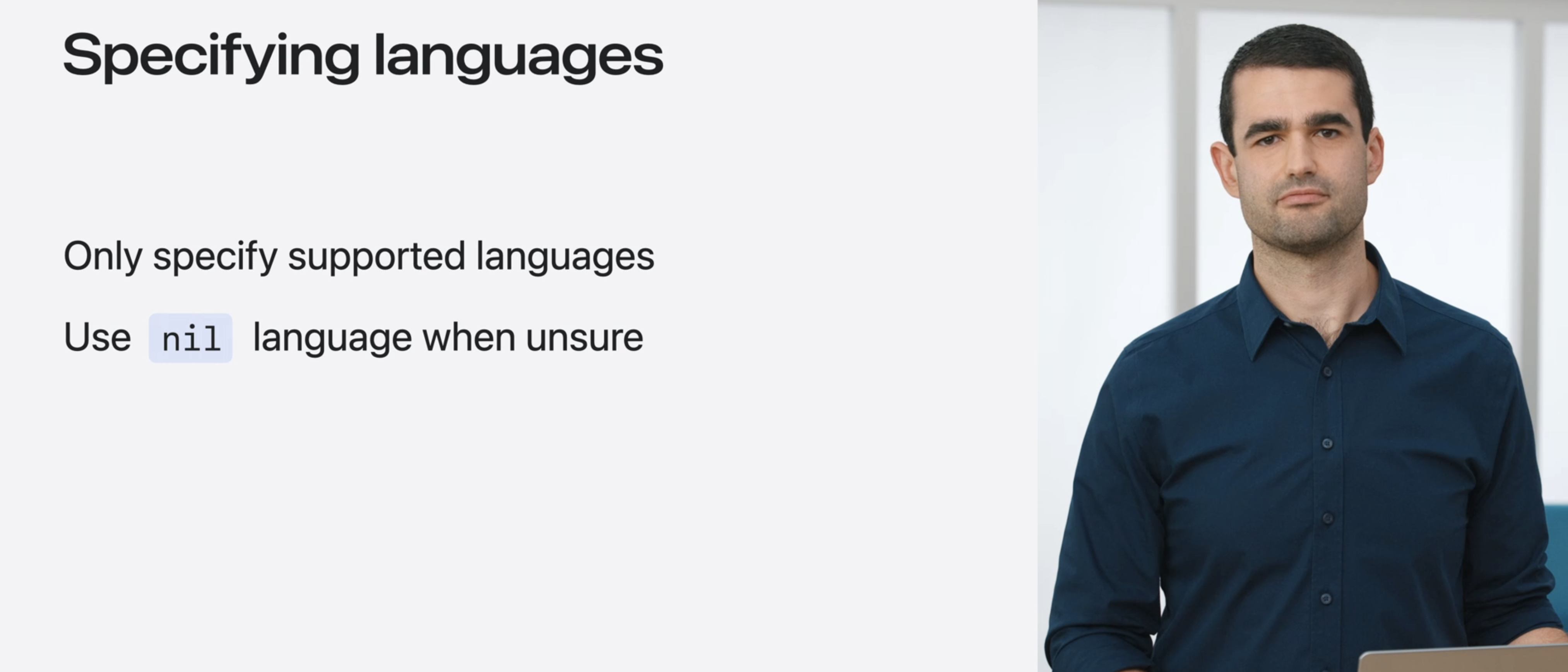 콘텐츠가 어떤 언어인지 또는 어떤 언어로 번역할 것인지 확실하지 않으면 nil을 사용해 프레임워크에서 언어를 선택하도록 합니다.