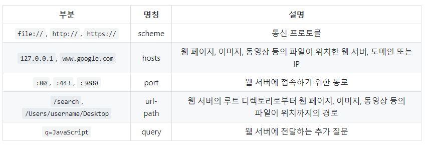 ex) GET method = 리소스를 받음, POST method = 데이터를 서버로 전송