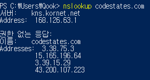 터미널에서 nslookup을 이용해 IP주소를 확인 가능
