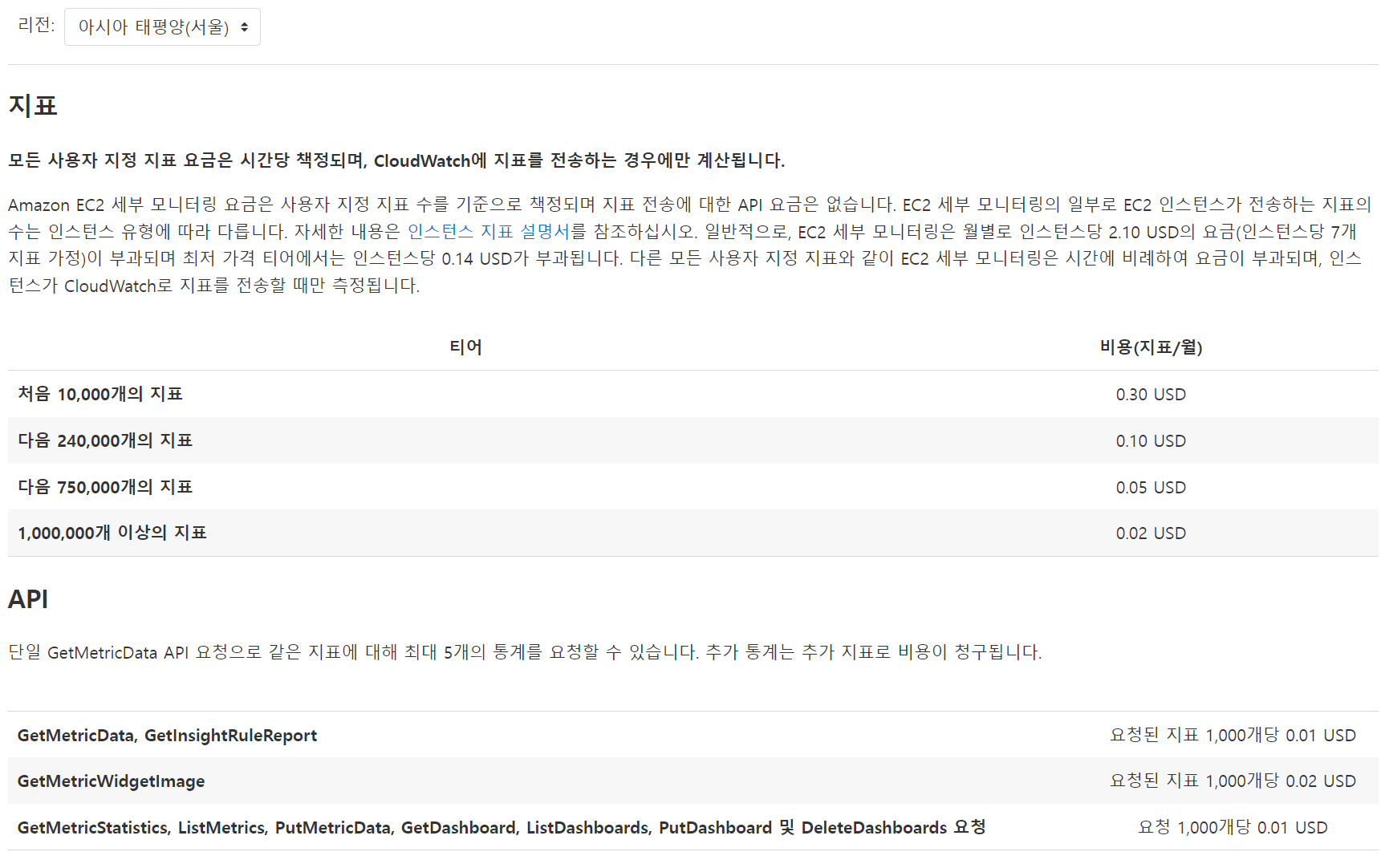 https://aws.amazon.com/ko/cloudwatch/pricing/