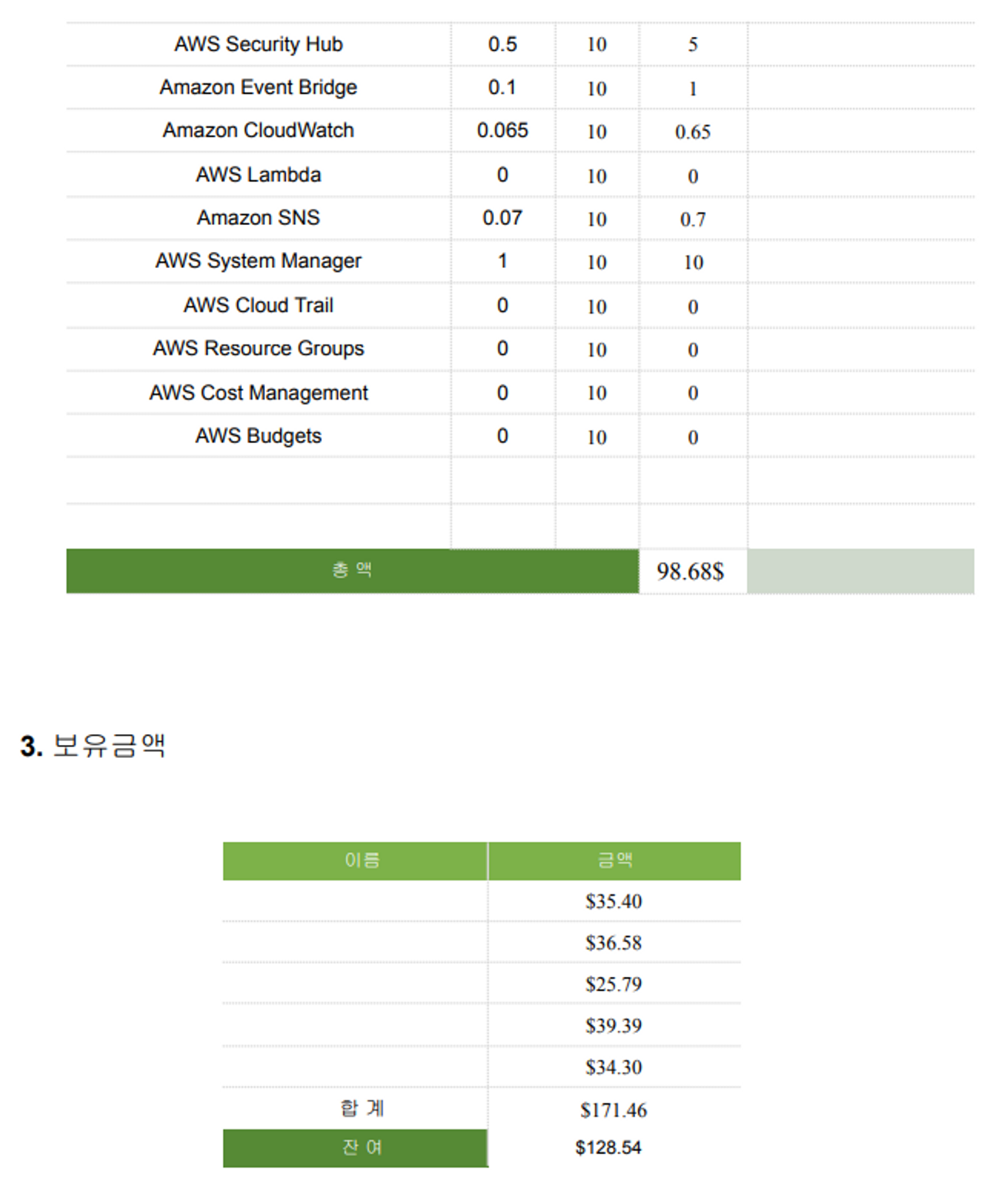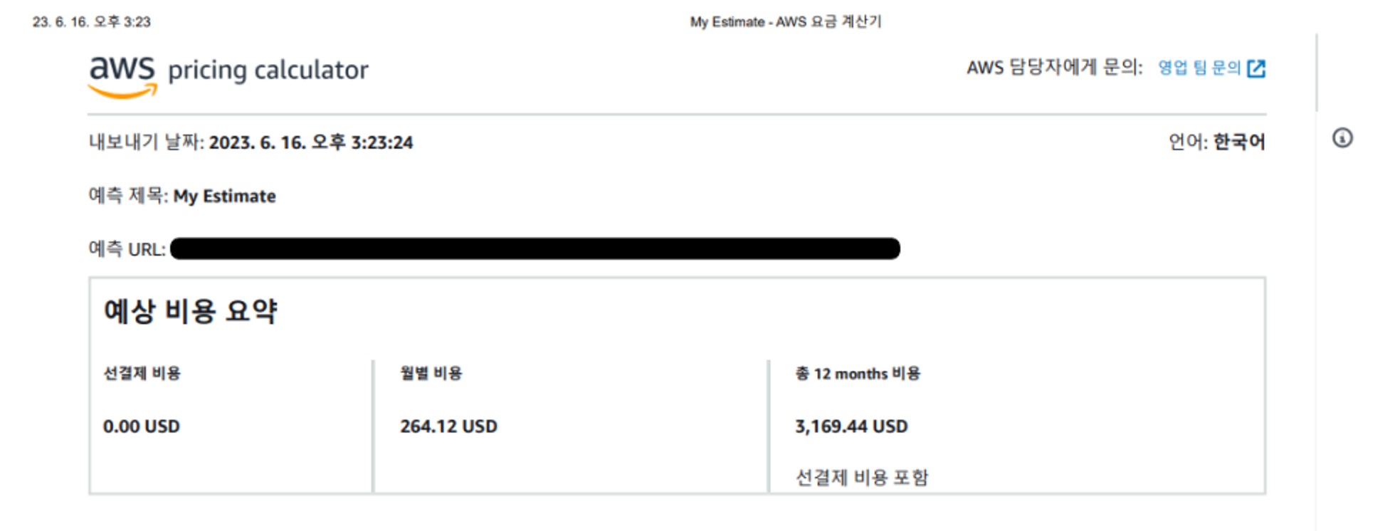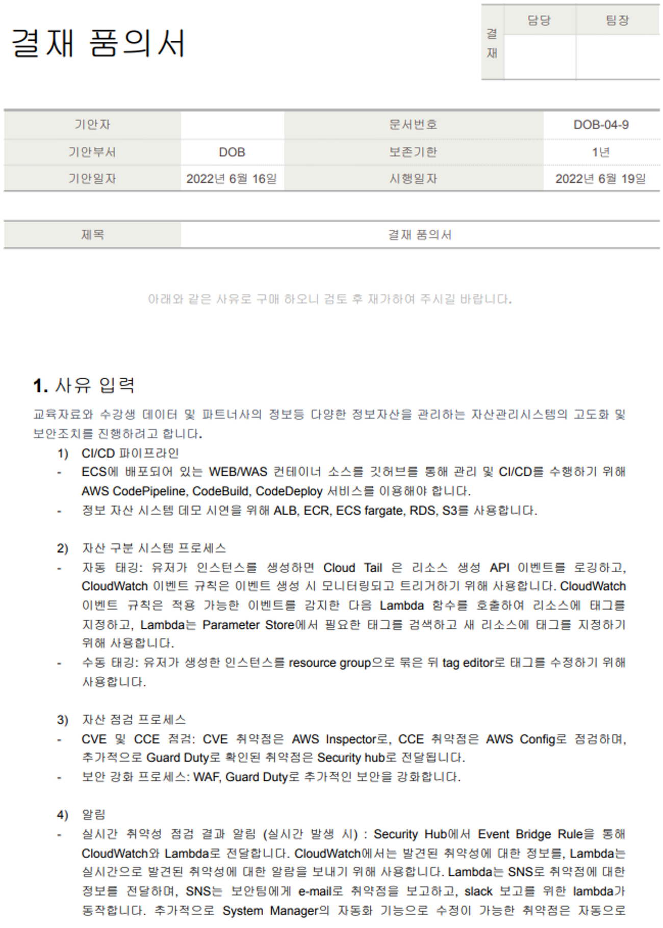 AWS calculator를 이용해 예상 비용을 산출하고, 결제 품의서를 작성 했다.