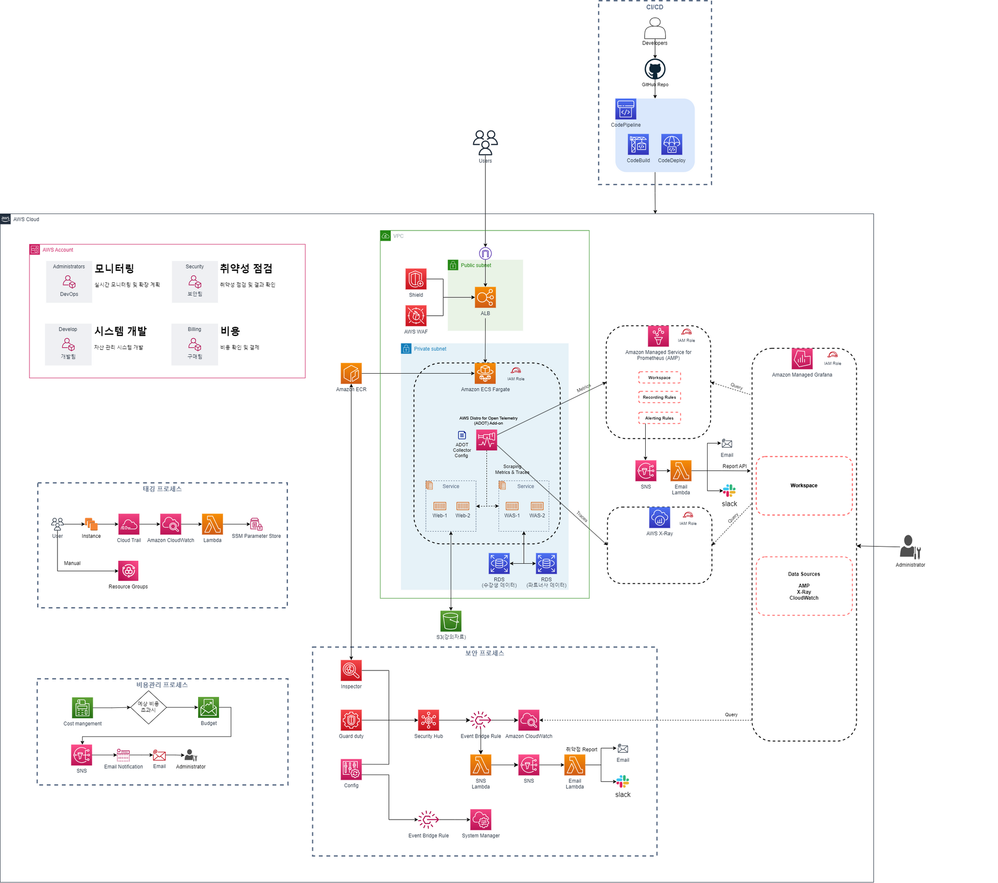 Grafana의 유료 버전 기능 사용을 승인 받아서 API를 보내 리포팅 하는 기능을 EventBridge를 사용해 만들었지만 AMP의 Alerting Rules를 이용해 스케줄에 맞게 Lambda를 통해서 보고서를 보내는 부분에 API도 함께 보낼 수 있도록 하였다.