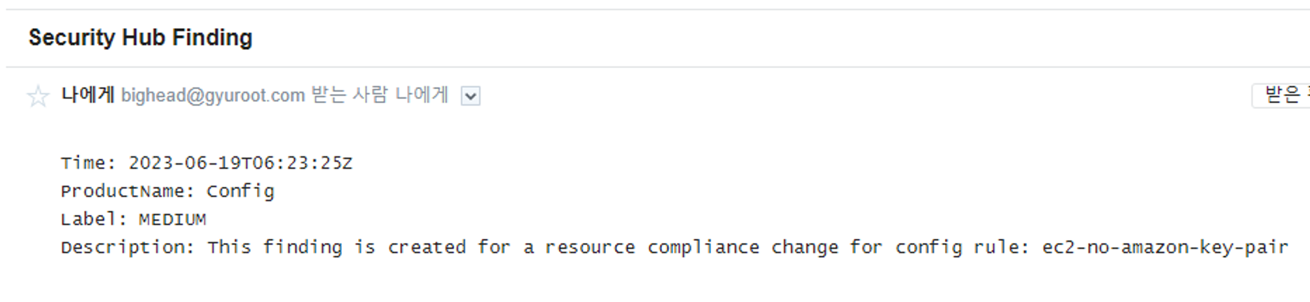 send_email("Security Hub Finding", message, "<수신자>", "<발신자>")