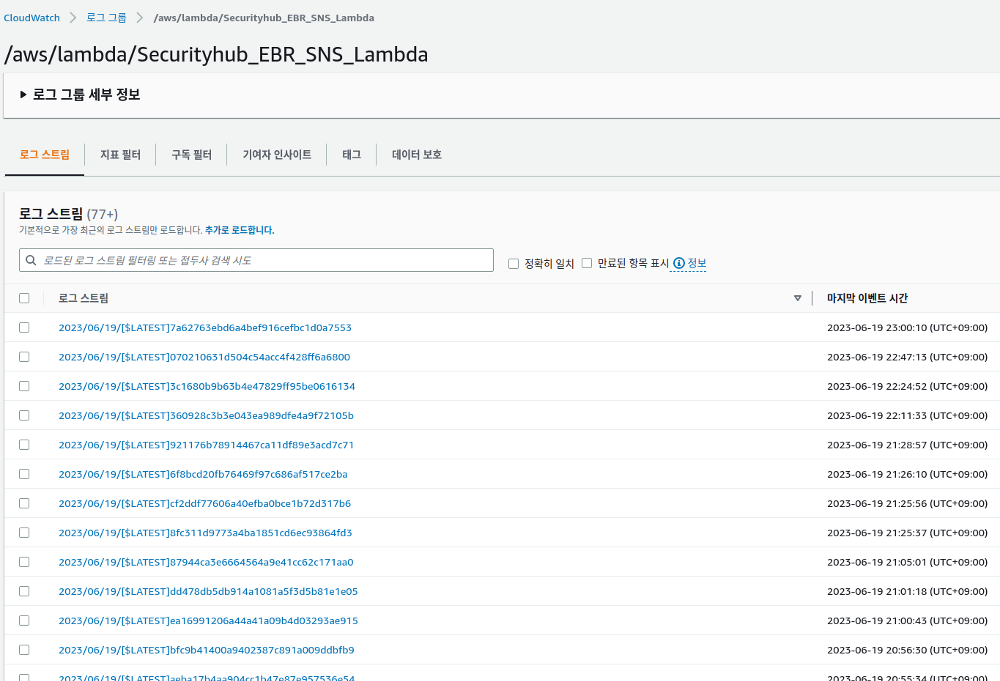 해결하기 위해서 Lambda의 트리거를 SNS에서 CloudWatch Log로 변경 하였지만 동일하다.