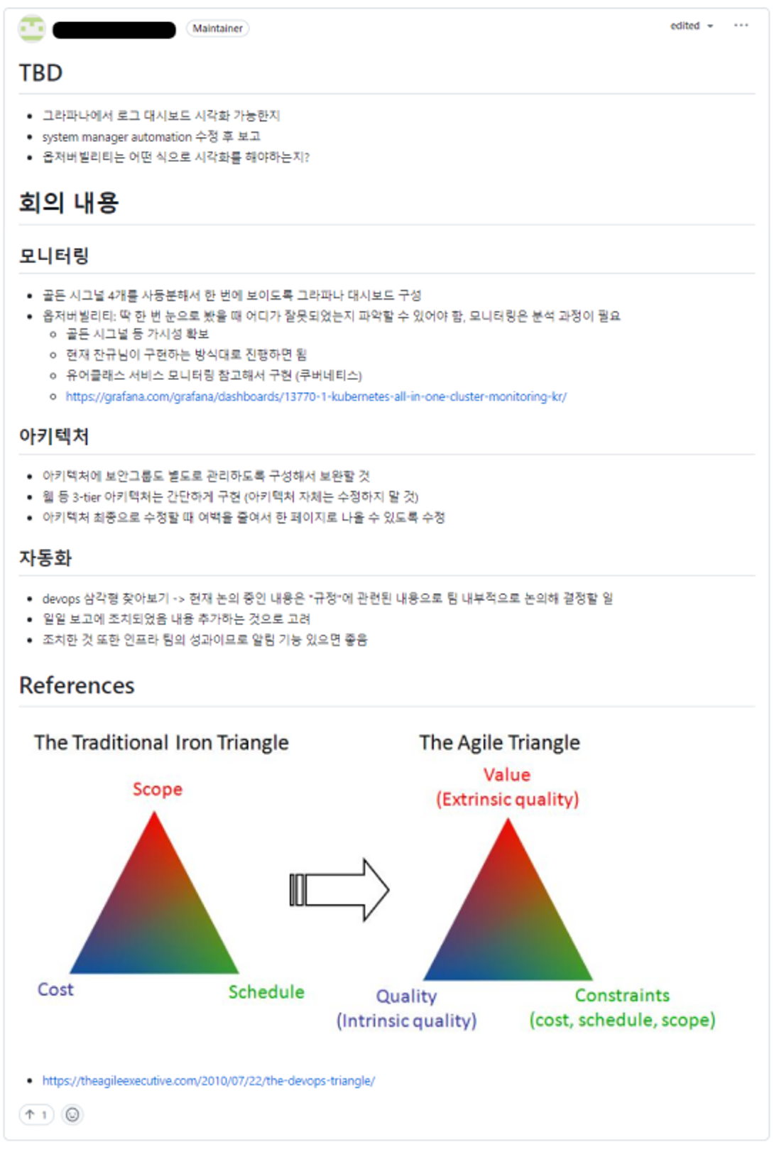 아키텍처 미팅이 있었다. 지금까지의 구현 상황을 브리핑 후, 이후에 구현할 방향에 대해서 이야기하는 시간을 가졌다.