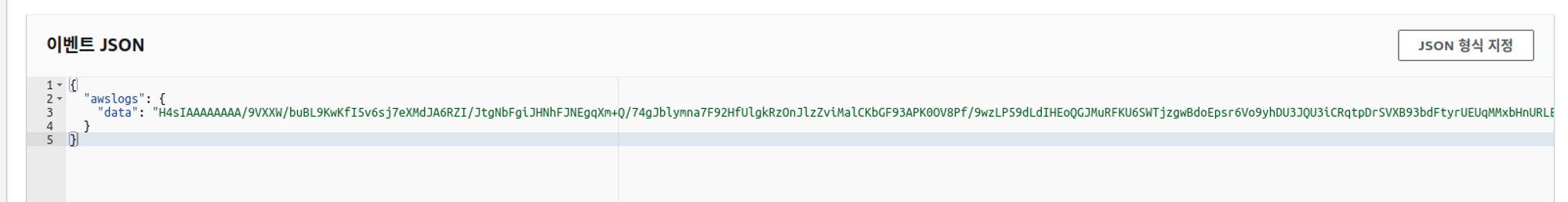 Lambda 함수에 전달되는 인코딩 된 로그를 뽑아서 그 로그로 테스트하는 환경을 구축했다.
