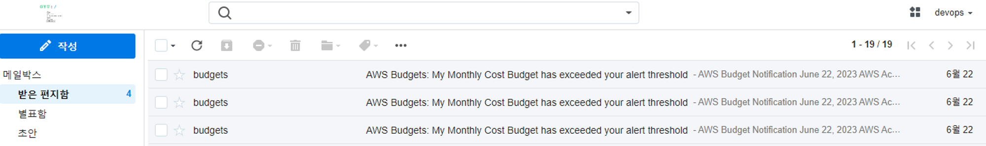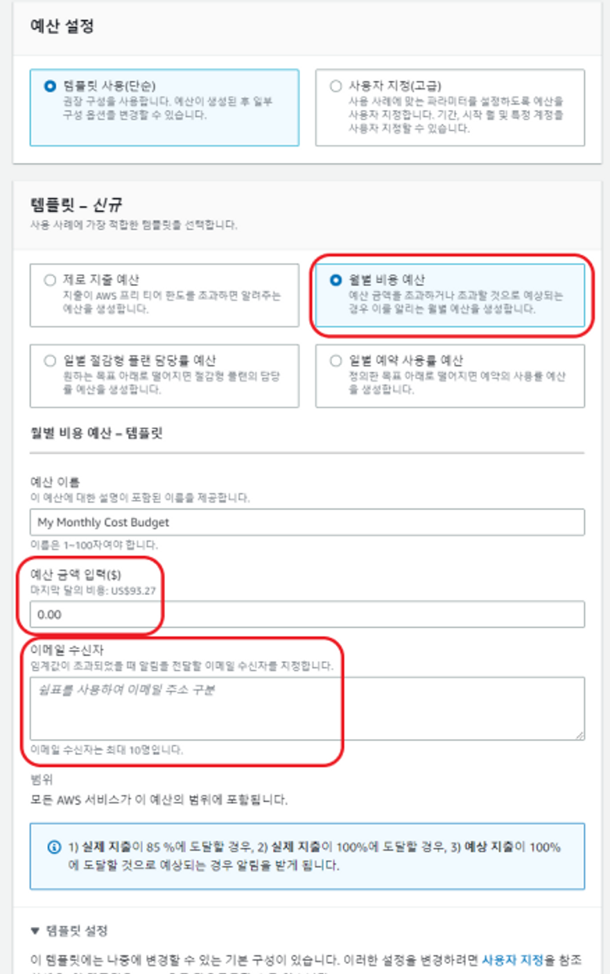 Budgets을 통해서 예상 비용이 초과하면 이메일로 알람을 보내주도록 구현했다.