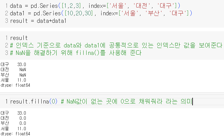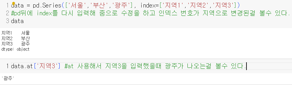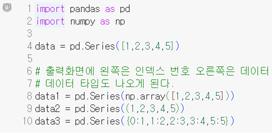 series : pandas 를 구성하는 자료형(1차원 자료형)