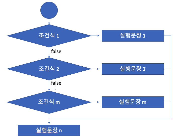 마지막에 else를 추가할 수 있는데 모든 조건식이 flase일 경우 else를 실행.