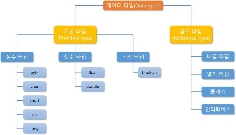 자바의 데이터 타입은 크게 기본 타입(primitive)과 참조 타입(reference type)으로 분류된다.