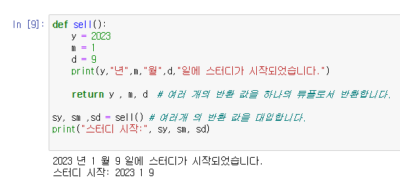# 간단한 예시 def sell(): # 함수의 이름 print("판매가 되었습니다.")