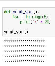 20개의 별표기호(*)를 한 줄에 출력하는 print_star() 함수를 생성하여라.