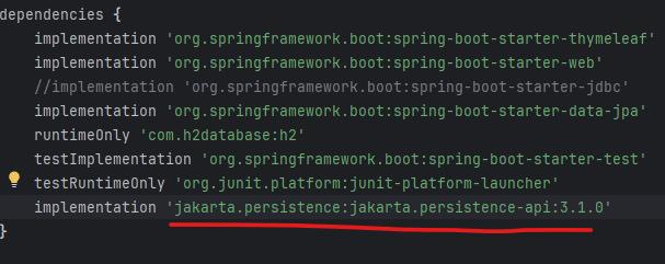 2번째로 Maven이나 Gradle 같은 빌드 도구에서 jakarta.persistence라이브러리를