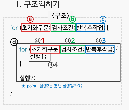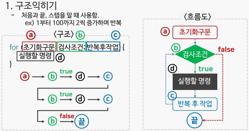 : 1.조건식에 따라 반복 여부를 결정한 경우로 true일 경우 계속해서 반복하고 false일 경우 반복 종료