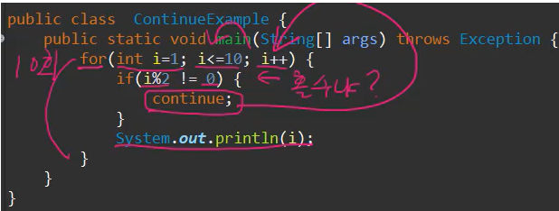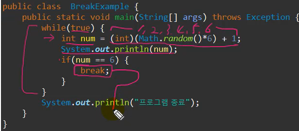:1.for, while,do-while,switch문의 실행을 중지할때 사용하며