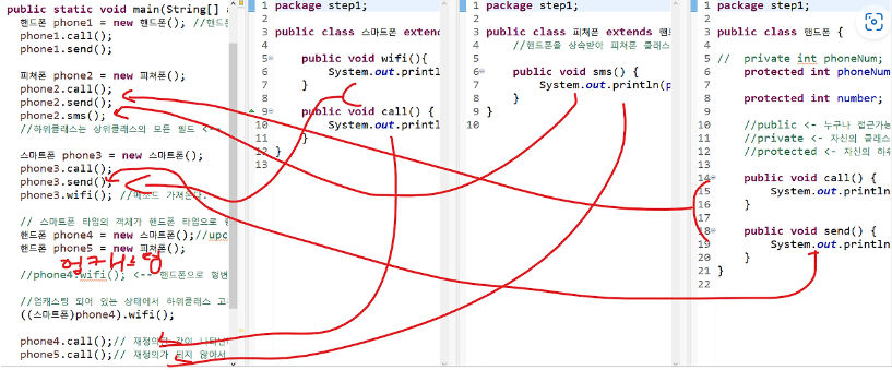 : phone4,phone5의 변수는 스마트폰과 피쳐폰의 객체를 버리고 핸드폰의 객체로 가져온다.