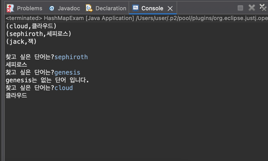 h.put("cloud", "클라우드"); // "cloud"가 키이고, "클라우드"는 값이다.