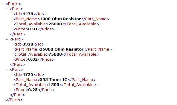 위 이미지에서 보듯 HTML과는 달리 어디서부터 어디까지가 Part_Name이고 어디서부터 어디까지가 Price인지 알 수 있다.