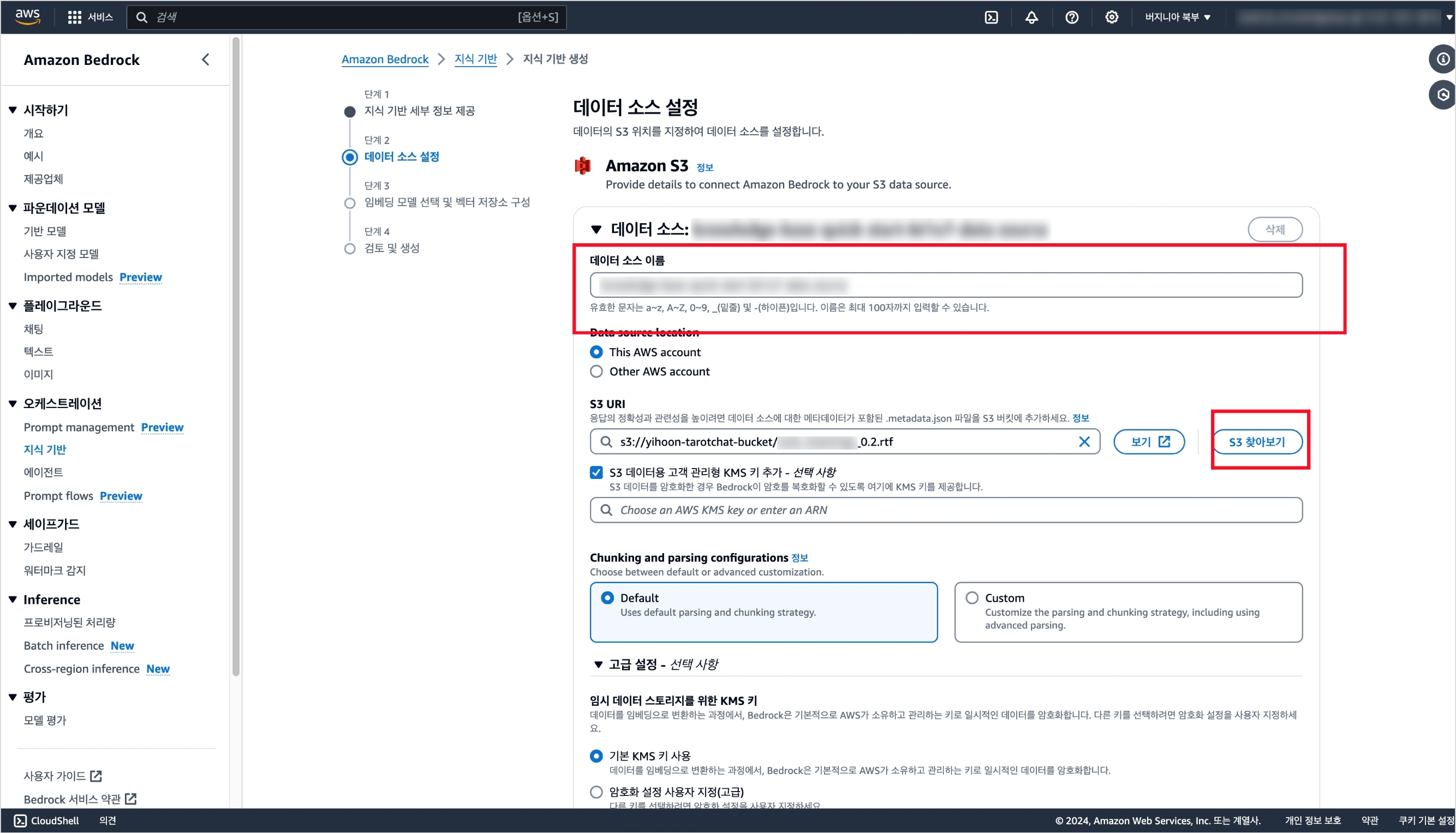참고로 버킷에 업로드된 지식기반 문서가 업데이트될 경우 이 작업 또한 다시 수행해 주어야 한다.
