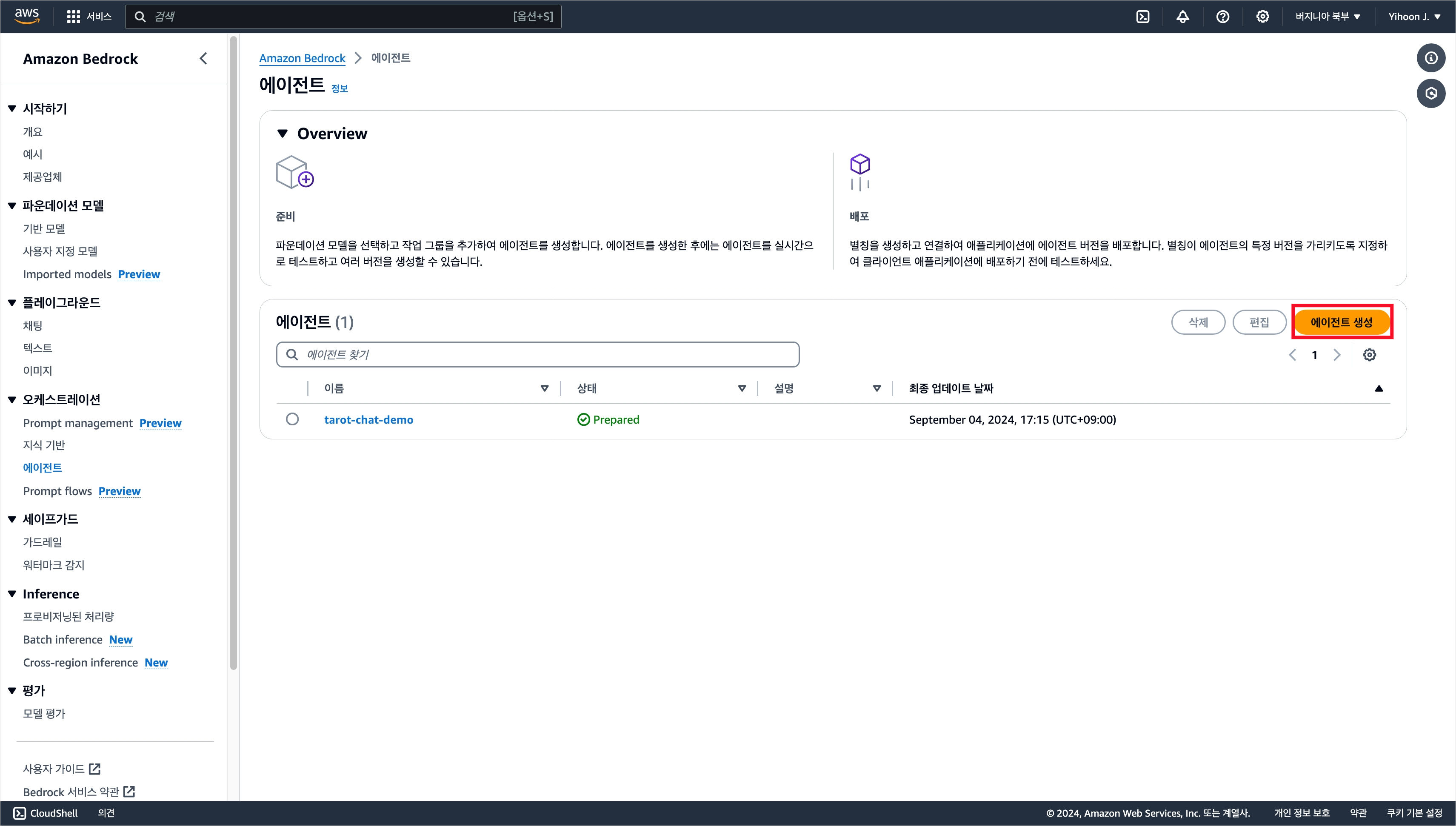이번 편에서는 클라이언트가 대화를 주고받을 Bedrock 에이전트를 구축할 것이다. 현재까지는 아키텍처 구축 과정에서 시간 및 비용 절감을 위해 Claude 3 Haiku FM을 사용했지만, 지금부터는 Claude 3 Sonnet 기반의 에이전트를 직접 구축하여 사용할 것이다.