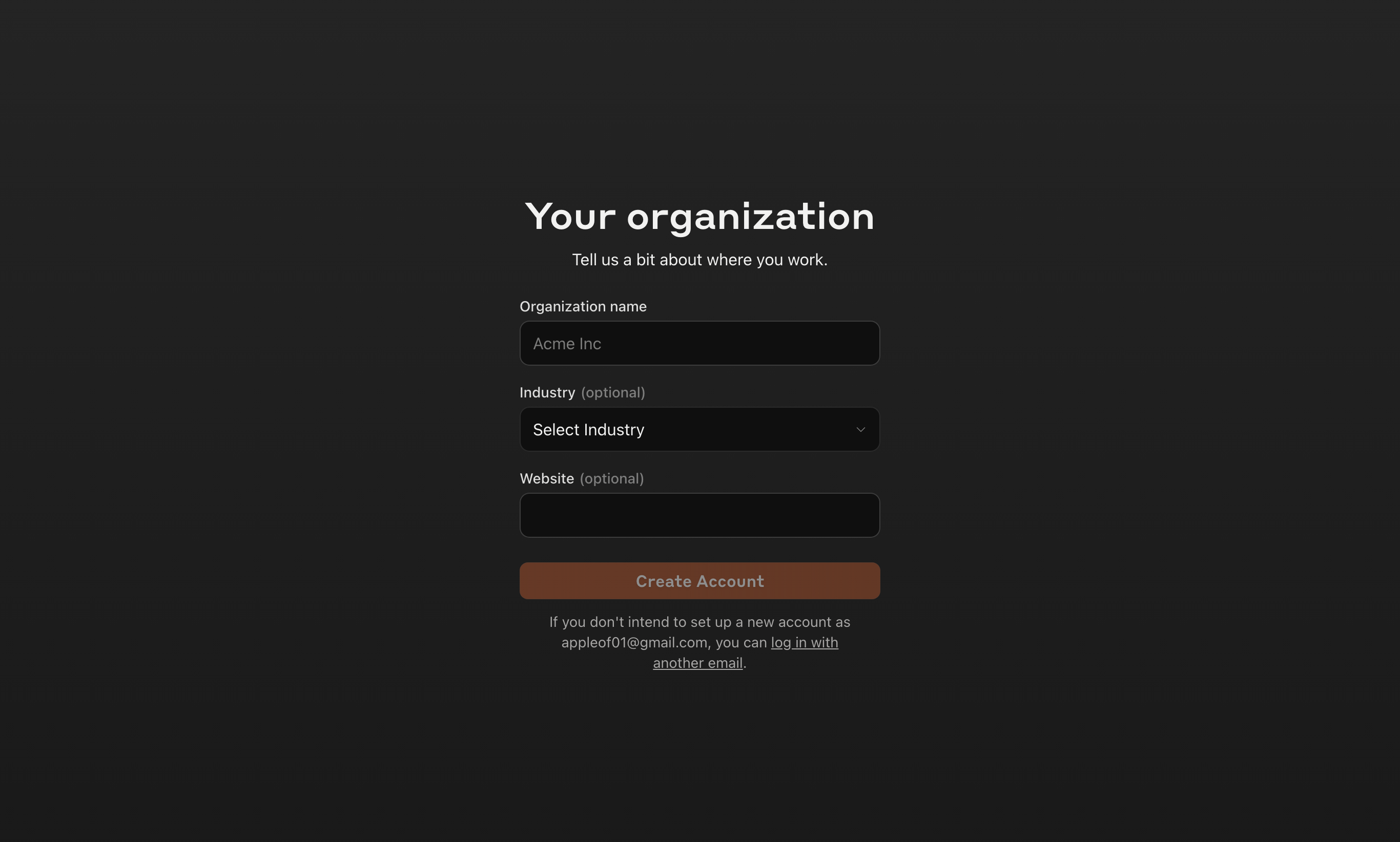 회원가입 시 자신의 회사명과 그 외 정보를 입력한다.
